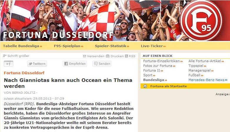 Σύμφωνα μάλιστα με δημοσίευμα ιστοσελίδας ο παίκτης του Άρη βρέθηκε και στην «Esprit-Arena» και μάλιστα έγινε αντιληπτός από αρκετό κόσμο που βρισκόταν εκείνη την ώρα στο γήπεδο λόγω της συνέντευξης Τύπου που παρέθεσε ο Νόρμπερτ Μέιερ, μετά την ανακοίνωση του «διαζυγίου» του με τη Φορτούνα Ντίσελντορφ!