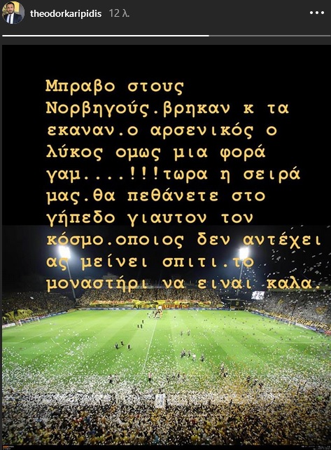 Τις τελευταίες μέρες, με δύο ποσταρίσματα στο instagram θέλησε να μεταφέρει την πίστη του στην ομάδα και προς τον κόσμο. Το έκανε άλλωστε και χθες με την επίσκεψή του στο Νέο Ρύσιο…