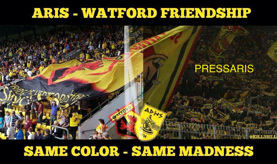 Θα θυμηθούμε μία συνέντευξη του PRESSARIS προ πενταετίας, που εξηγεί τον λόγο που οι οπαδοί της Γουότφορντ αγαπούν τον Άρη, ενώ αντίστοιχα και οι οπαδοί του Άρη ανταποδίδουν αντίστοιχα στον τον αγγλικό σύλλογο.