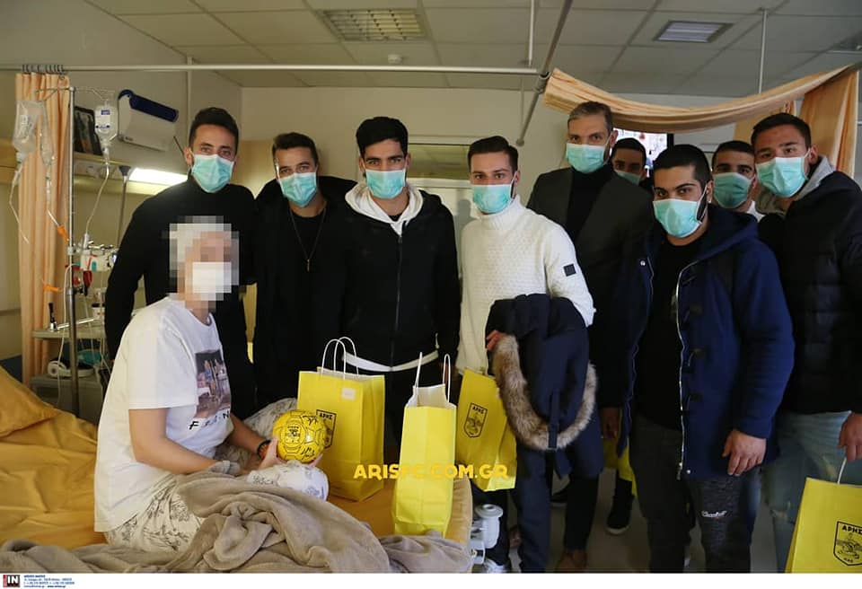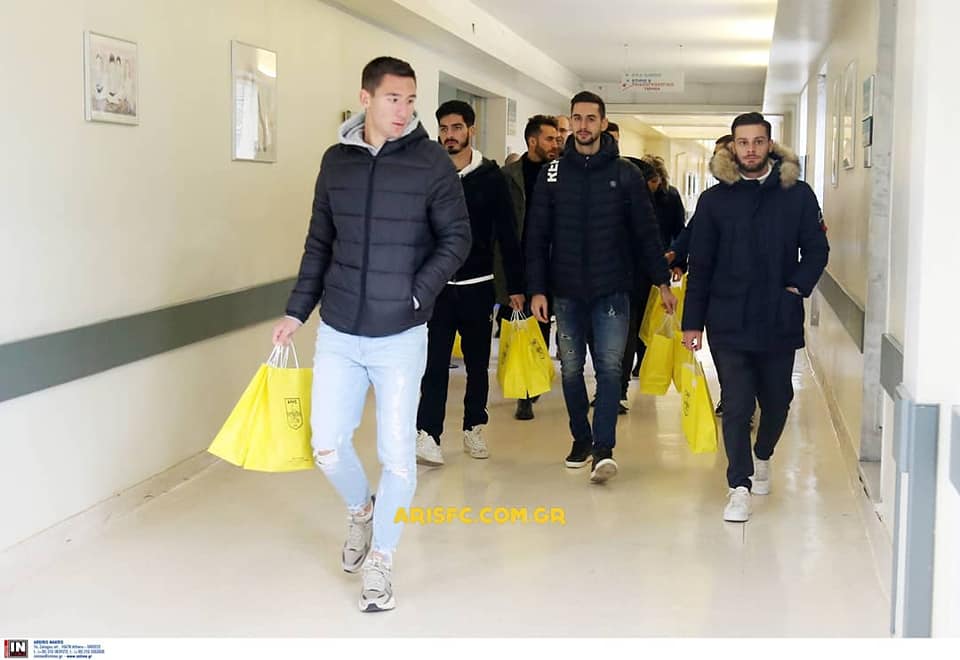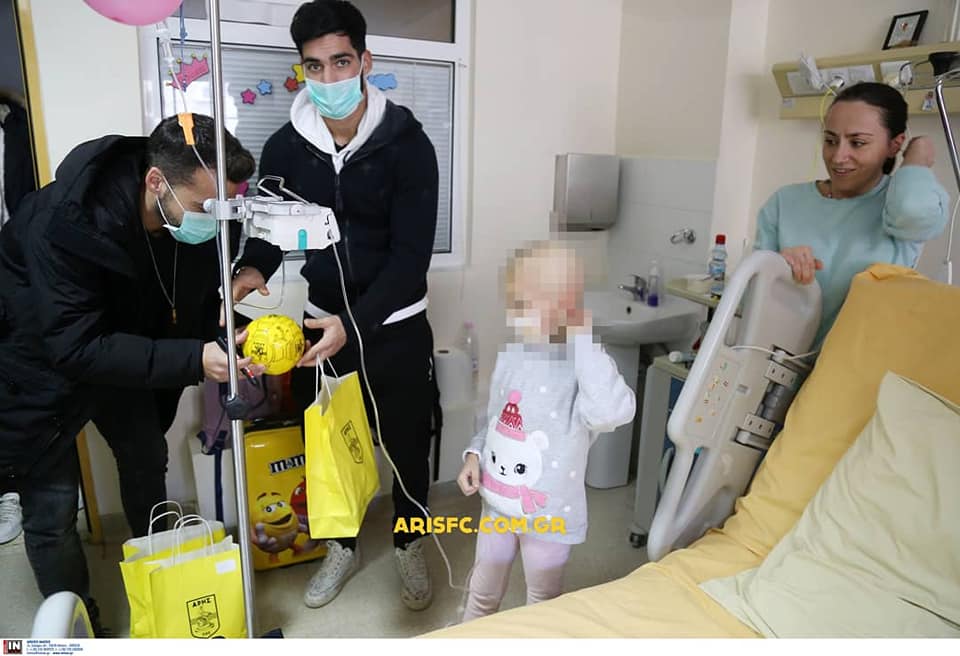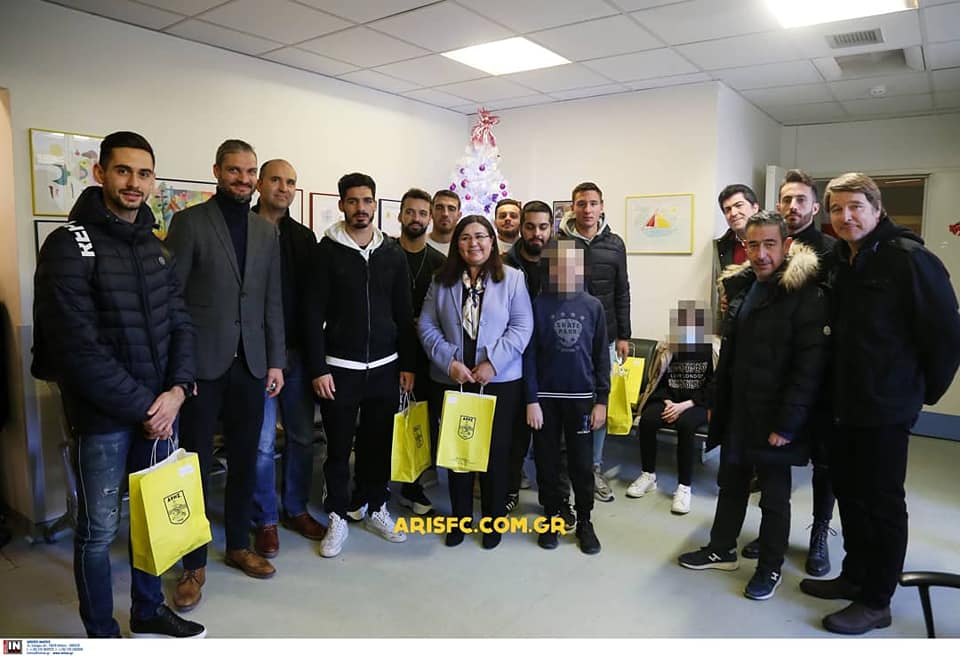 Αναφέρει σχετικά η ΠΑΕ Άρης: «Αντιπροσωπεία ποδοσφαιριστών του ΑΡΗ (Φραν Βέλεθ, Μπρούνο Γκάμα, Ούγκο Σόουζα, Φιορίν Ντουρμισάι, Άλεξ Μενέντεθ, Δημήτρης Κωνσταντινίδης και Πέτρος Μπαγκαλιάνης) συνοδευόμενοι από τον Διευθυντή Ποδοσφαιρικού Τμήματος, Άγγελο Χαριστέα, τον προπονητή, Μίχαελ Ένινγκ και τον γιατρό της ομάδας μας, Θεοχάρη Κυριακίδη, επισκέφτηκαν σήμερα το μεσημέρι το Παιδοογκολογικό Τμήμα της Β’ Παιδιατρικής κλινικής του Π.Γ.Ν.Θ. «ΑΧΕΠΑ», όπου μοιράστηκαν δώρα, ευχές και χαμόγελα στα παιδιά.