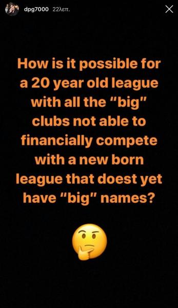 Ο επικεφαλής ΚΑΕ Παναθηναϊκός τοποθετήθηκε σχετικά με αιχμηρές δηλώσει μέσα από το Instagram, αναφέροντας: «Πώς είναι δυνατόν για μια λίγκα 20 ετών με όλα τα «μεγάλα» κλαμπ να μην είναι σε θέση να ανταγωνιστεί οικονομικά μια νεογέννητη λίγκα που δεν έχει ακόμα «μεγάλα» ονόματα;