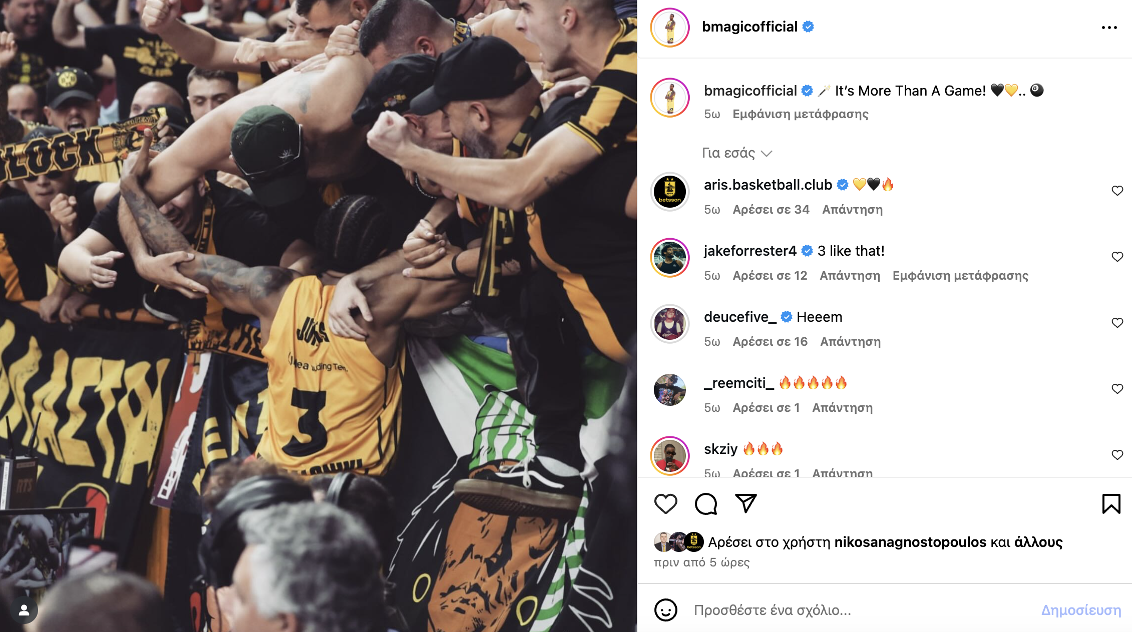 Ο Μπράις Τζοόυνς πραγματοποίησε καταπληκτική εμφάνιση κόντρα στην Βενέτσια και μετά το τέλος του αγώνα κινήθηκε στην πλευρά των φίλων του Άρη κι έγινε…ένα μαζί τους!