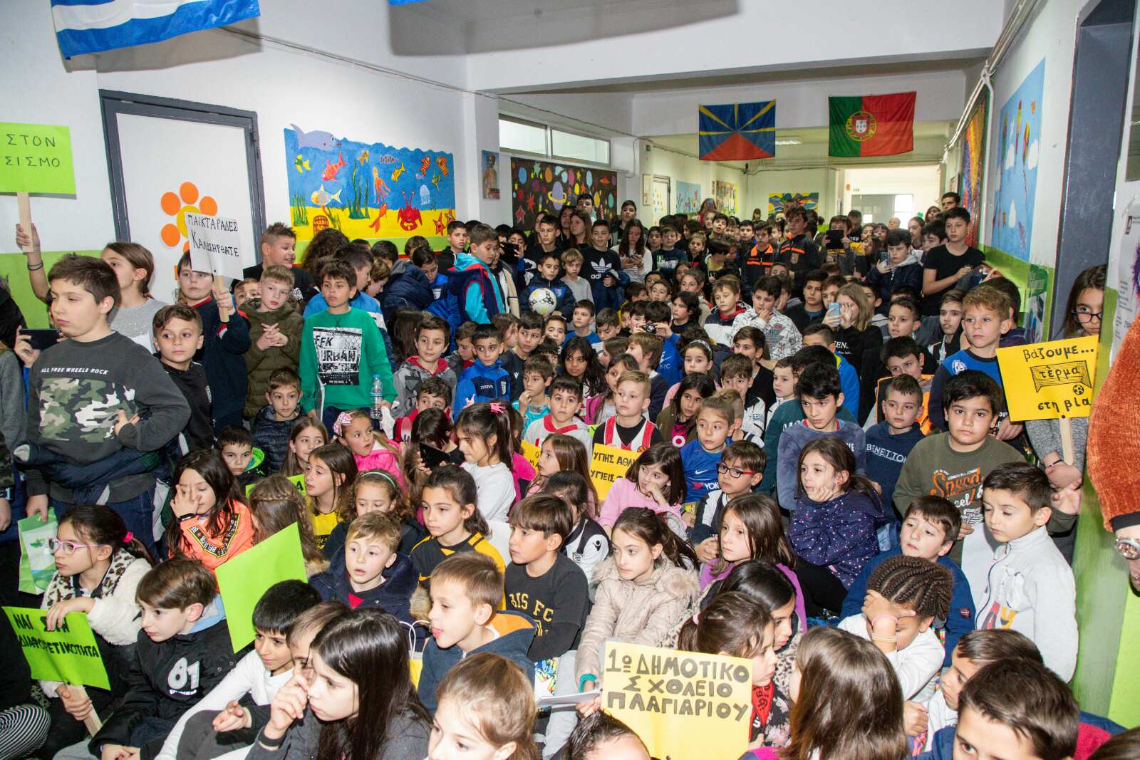 Η χαρά μας ήταν μεγάλη αφού δεν μιλήσαμε μόνο εμείς, αλλά και τα παιδιά μέσα από τα πλακάτ που έφτιαξαν με μηνύματα όπως »Βάζουμε τέρμα στη βία», «Ο αθλητισμός μας διδάσκει», «Υγιής αθλητισμός, υγιείς φίλαθλοι», » Ναι στη διαφορετικότητα» και άλλα.