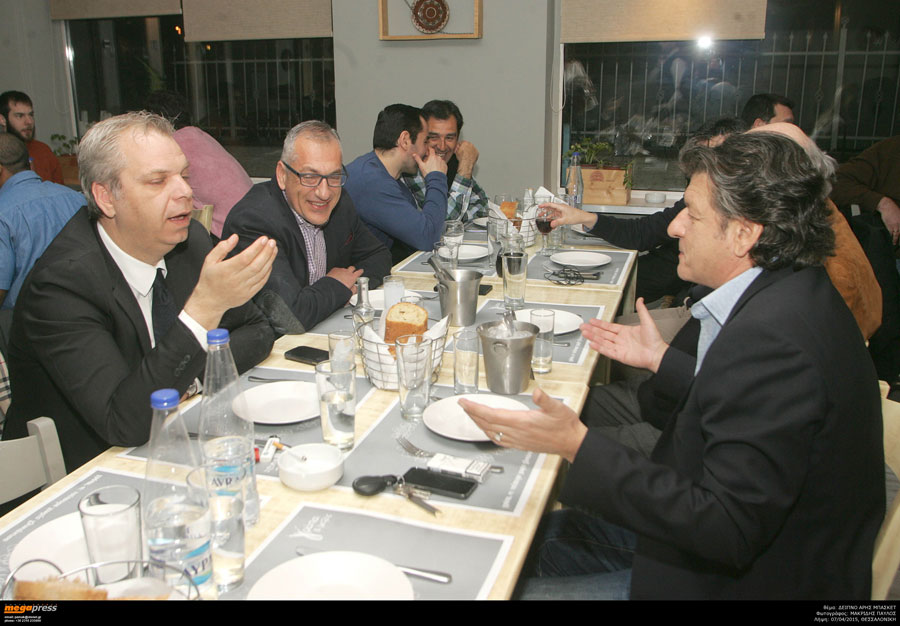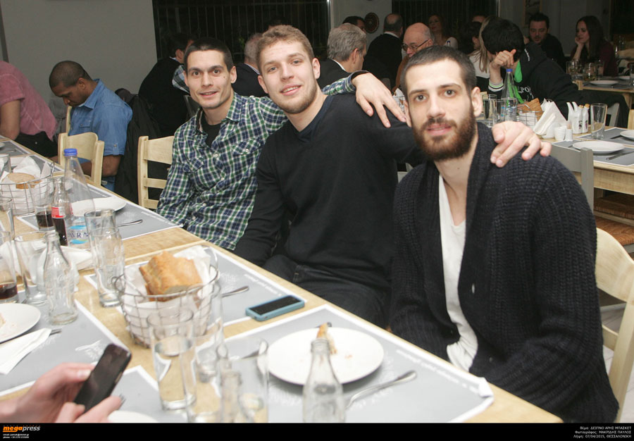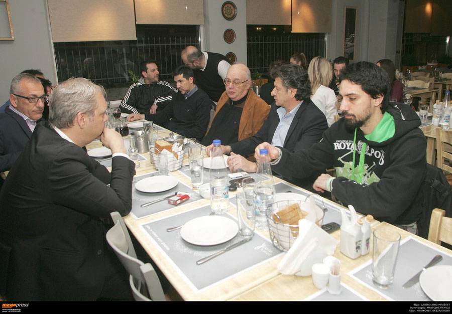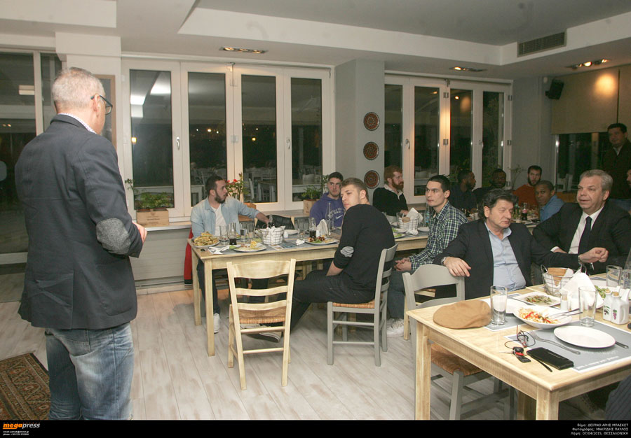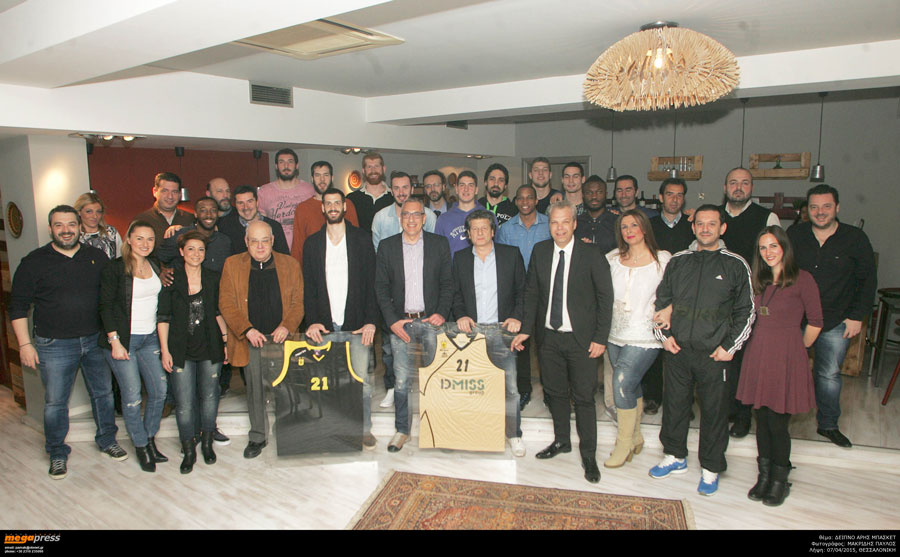 Στο εστιατόριο “Γράπα και Μεζές” του Αστέριου Σακελλαρίου, ο οποίος δέχθηκε δύο δώρα από την ΚΑΕ, ένα άγαλμα του θεού Άρη και ένα ημερολόγιο, βρίσκονται όλοι οι παίκτες, το τεχνικό τιμ, το υπαλληλικό προσωπικό και φυσικά η διοίκηση του μπασκετικού τμήματος. Παρόντες φυσικά και οι δύο βασικοί χρηματοδότες της ΚΑΕ, Ντίμης Παπαϊωάννου και Θανάσης Πλιάκης. Η ΚΑΕ θα μοιράσει και λαμπάδες σε όλους τους παίκτες από το Aris Legend Store.