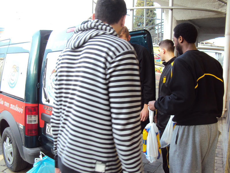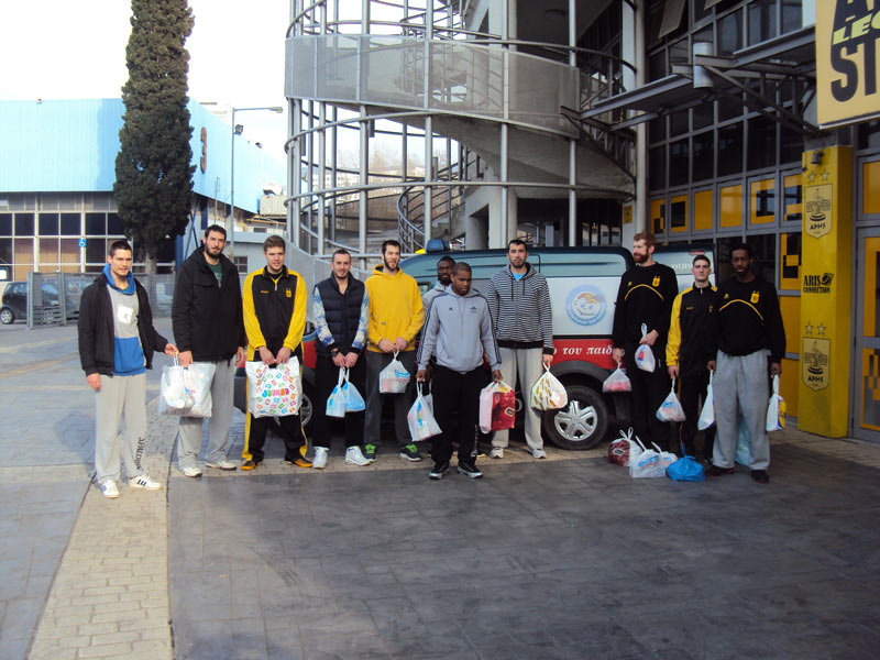 Σήμερα Πέμπτη (22/1) οι καλαθοσφαιριστές του Άρη παρέδωσαν τις σακούλες με τα είδη πρώτης ανάγκης στους εκπροσώπους του Οργανισμού «Το Χαμόγελο του Παιδιού» που ήρθαν στο Αλεξάνδρειο Μέλαθρο. Οι παίκτες του Άρη εξέφρασαν τη χαρά τους για τη συμμετοχή της ομάδας σ’ αυτήν την εκστρατεία και οι εκπρόσωποι του Οργανισμού ευχαρίστησαν τον Άρη για τη βοήθεια στην πολύ σημαντική προσπάθεια.