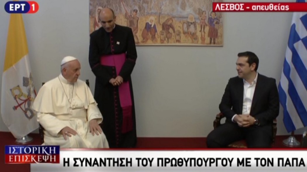 Στη συνάντηση που είχε με τον Πάπα αμέσως μετά την υποδοχή του, ο κ. Τσίπρας έκανε λόγο για μια πρωτοφανή προσφυγική κρίση. «Η επίσκεψή σας εδώ είναι μια πολύ σημαντική ευκαιρία να αναδείξουμε την ανάγκη να σταματήσει ο πόλεμος και να δοθεί η δυνατότητα μιας νόμιμης οδού για αυτούς τους ανθρώπους που φεύγουν από τις εστίες τους και ψάχνουν ένα καλύτερο μέλλον στην Ευρώπη», σημείωσε.