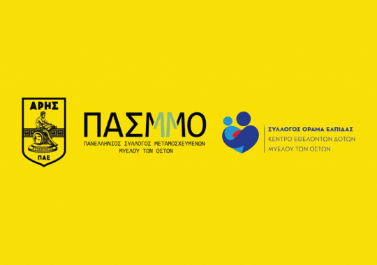 Η ΠΑΕ Άρης σε συνεργασία με τον Πανελλήνιο Σύλλογο Μεταμοσχευμένων Μυελού των Οστών (ΠΑΣΜΜΟ), τον Εθνικό Οργανισμό Μεταμοσχεύσεων (ΕΟΜ) και το Όραμα Ελπίδας διοργανώνει την Κυριακή (19/10) μια ξεχωριστή εκδήλωση ενημέρωσης και εγγραφής νέων εθελοντών δοτών μυελού των οστών.