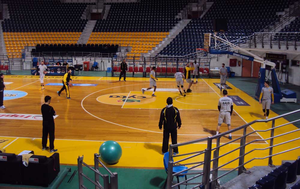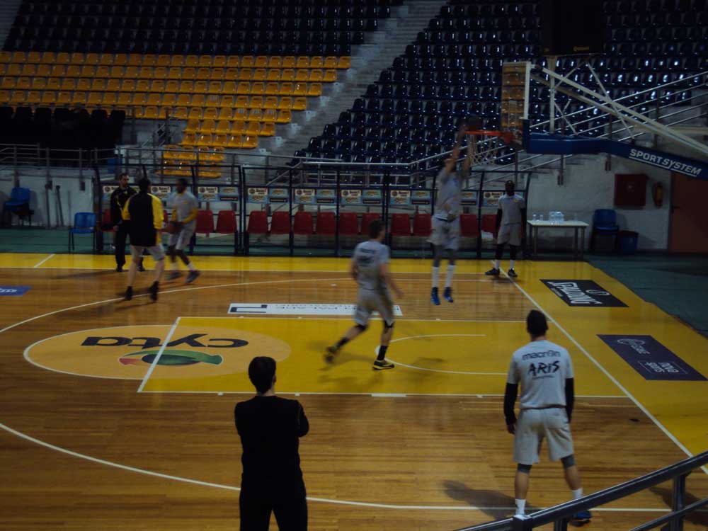 Μετά από την προπόνηση, ο Βασίλης Σίμτσακ και ο μάνατζερ της Άρης Κ.Α.Ε., Βασίλης Βουρτζούμης, κέρασαν τους παίκτες και το τεχνικό τιμ για την ονομαστική γιορτή τους, την Πρωτοχρονιά και δέχτηκαν τις ευχές όλων για υγεία και επιτυχίες”.