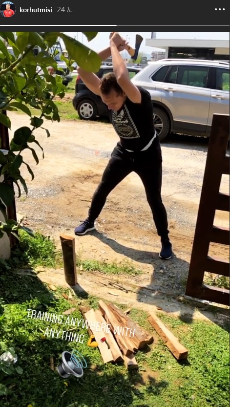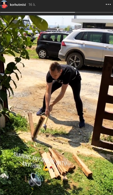 «Προπόνηση οπουδήποτε και με οτιδήποτε» έγραψε ο Κόρχουτ σαν σχόλιο στο σχετικό στιγμιότυπο που δημοσίευσε στο Instagram: