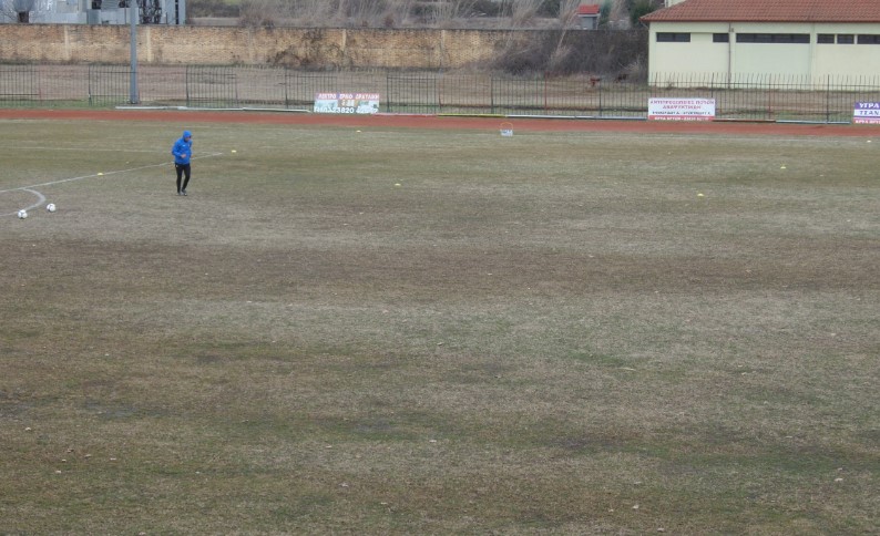 Το κρύο, ο δυνατός αέρας, αλλά και η βροχόπτωση των τελευταίων ημερών έχει μετατρέψει σε… ξερό το Δημοτικό Γήπεδο Κρύας Βρύσης.