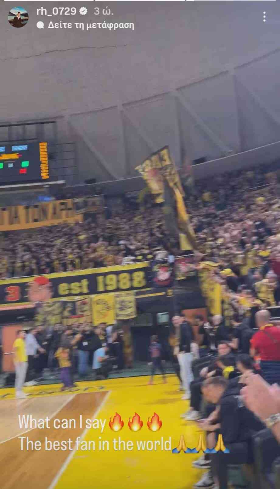 Ο μεγαλομέτοχος της «κίτρινης» ΚΑΕ ήταν εκστασιασμένος σε όλη τη διάρκεια της αναμέτρησης, καθώς εντυπωσιάστηκε από την ατμόσφαιρα που αντίκρισε στην πρώτη του παρουσία στο «Nick Galis Hall». Δεν είναι τυχαίο ότι κάποια στιγμή άρπαξε το μικρόφωνο και φώναξε «αγαπώ τον Άρη».