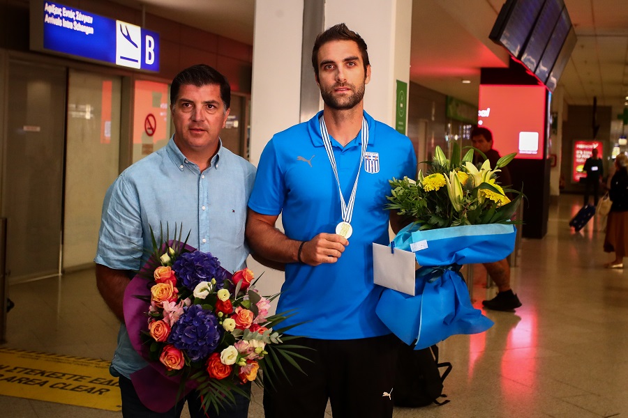 Μαζί του ταξίδεψε ο Βασίλης Πολύμερος, πρόεδρος της Ελληνικής Κωπηλατικής Ομοσπονδίας, ενώ στο αεροδρόμιο τον υποδέχθηκαν θερμά συγγενείς, φίλοι και εκπρόσωποι των μέσων ενημέρωσης.