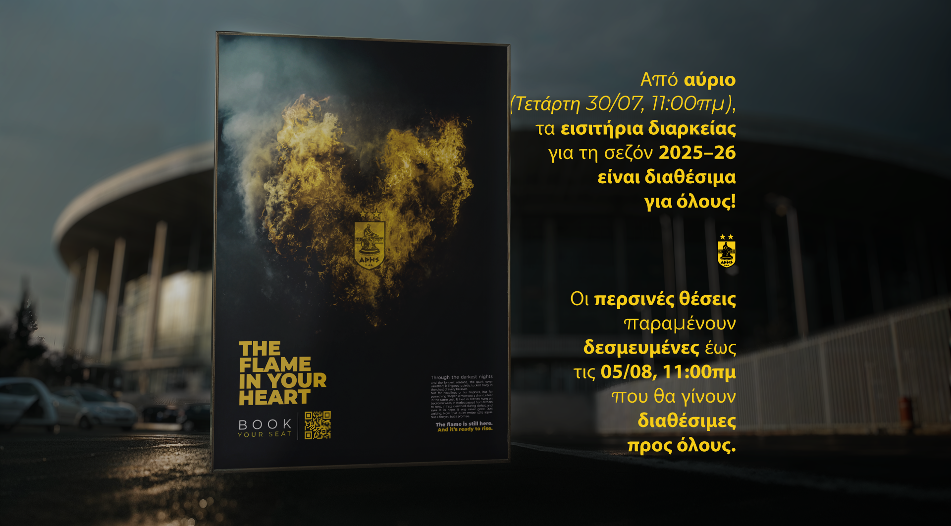 Η αρχή γίνεται την ερχόμενη Τετάρτη (08/10, 20:00), από τον αγώνα κόντρα στο Αμβούργο. Η νέα σεζόν ξεκίνησε και καμία φλόγα δεν είναι πιο δυνατή από εκείνη που ανάβει στην καρδιά μας όταν βρισκόμαστε όλοι μαζί στο γήπεδο. Κάθε φωνή, κάθε χειροκρότημα, κάθε παλμός της εξέδρας δίνει στην ομάδα μας την ώθηση να ξεπεράσει τα όριά της.