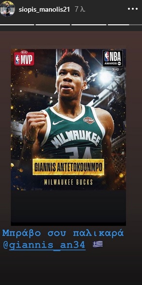 Ο Μανώλης Σιώπης «ανέβασε» στο instagram μια φωτογραφία του Έλληνα σούπερ σταρ γράφοντας «Μπράβο σου παλικαρά», ενώ ο Βασίλης Χρηστίδης μοιράστηκε τη χαρά του για την ανάδειξη του Γιάννη στον κορυφαίο της λίγκας.
