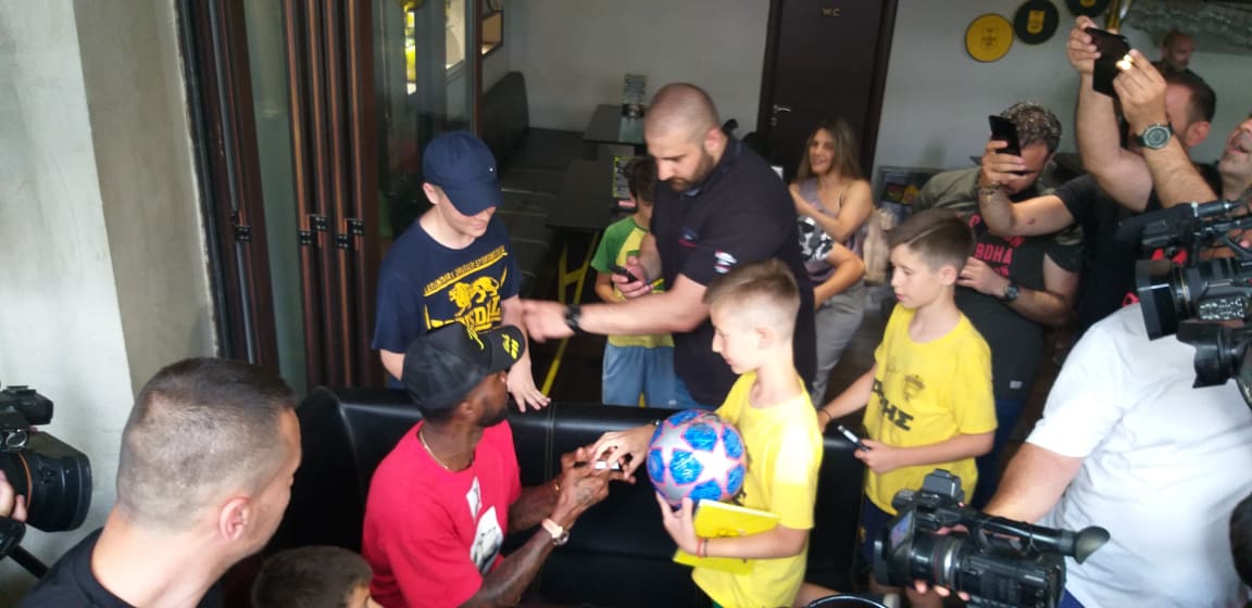 Οι νεαροί φίλοι του Άρη έσπευσαν να πάρουν ένα αυτόγραφο από το νέο μεταγραφικό απόκτημα του Άρη και να βγουν μια φωτογραφία μαζί του.