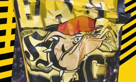 Με φόντο την κερκίδα και το σήμα του SUPER 3 η ΠΑΕ Άρης προαναγγέλλει το παιχνίδι της Κυριακή κόντρα στον Παναθηναϊκό.