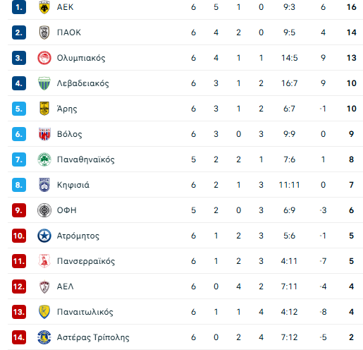 Αυτό, διότι ο ΠΑΟΚ επιβλήθηκε 2-1 του Ολυμπιακού στην Τούμπα στο μεγάλο ντέρμπι της 6ης «στροφής» κι έτσι η ομάδα του Νίκολιτς ευνοήθηκε ώστε στη διακοπή του πρωταθλήματος να πάει ως πρωτοπόρος της Λίγκας.